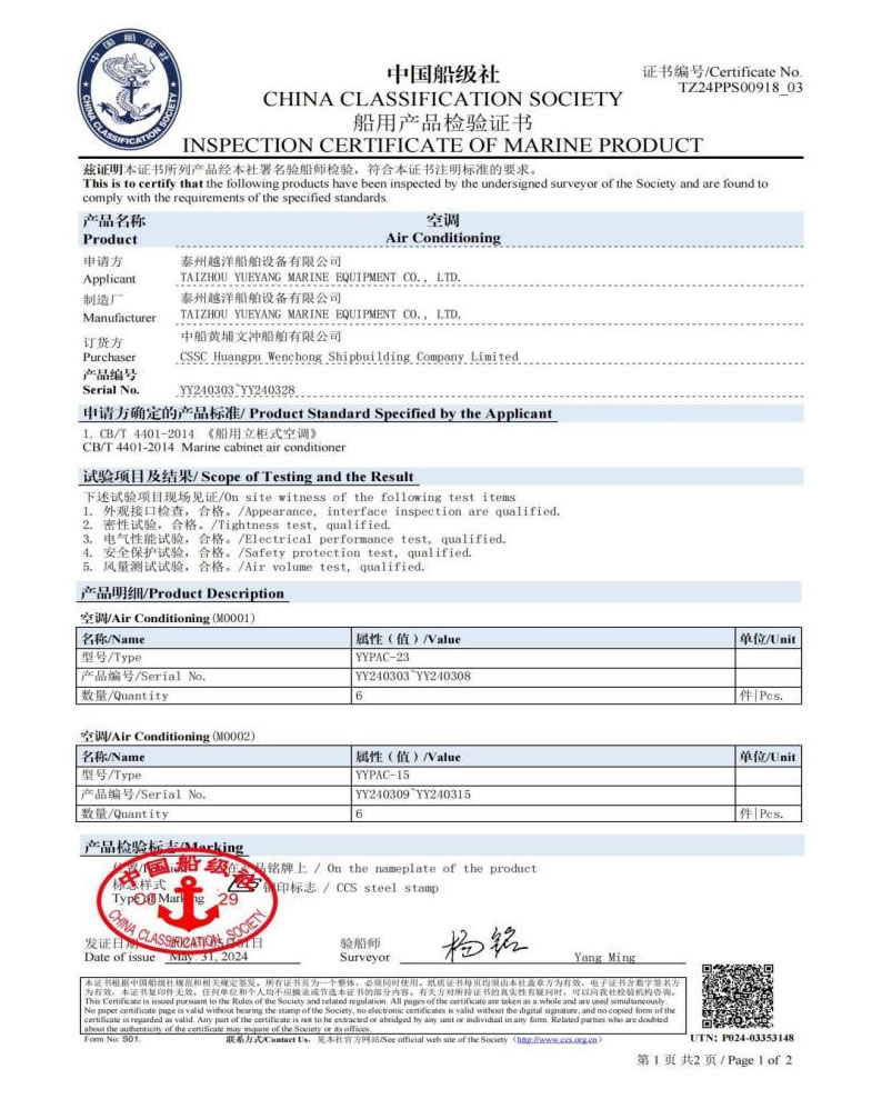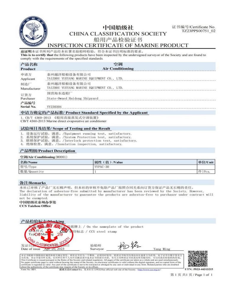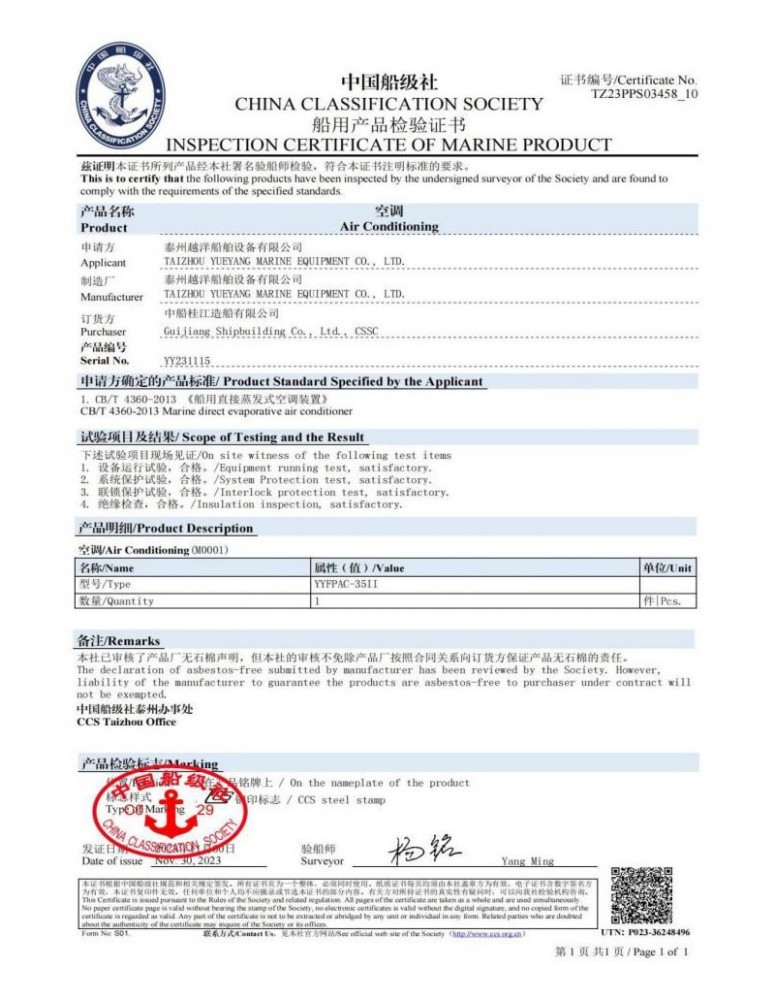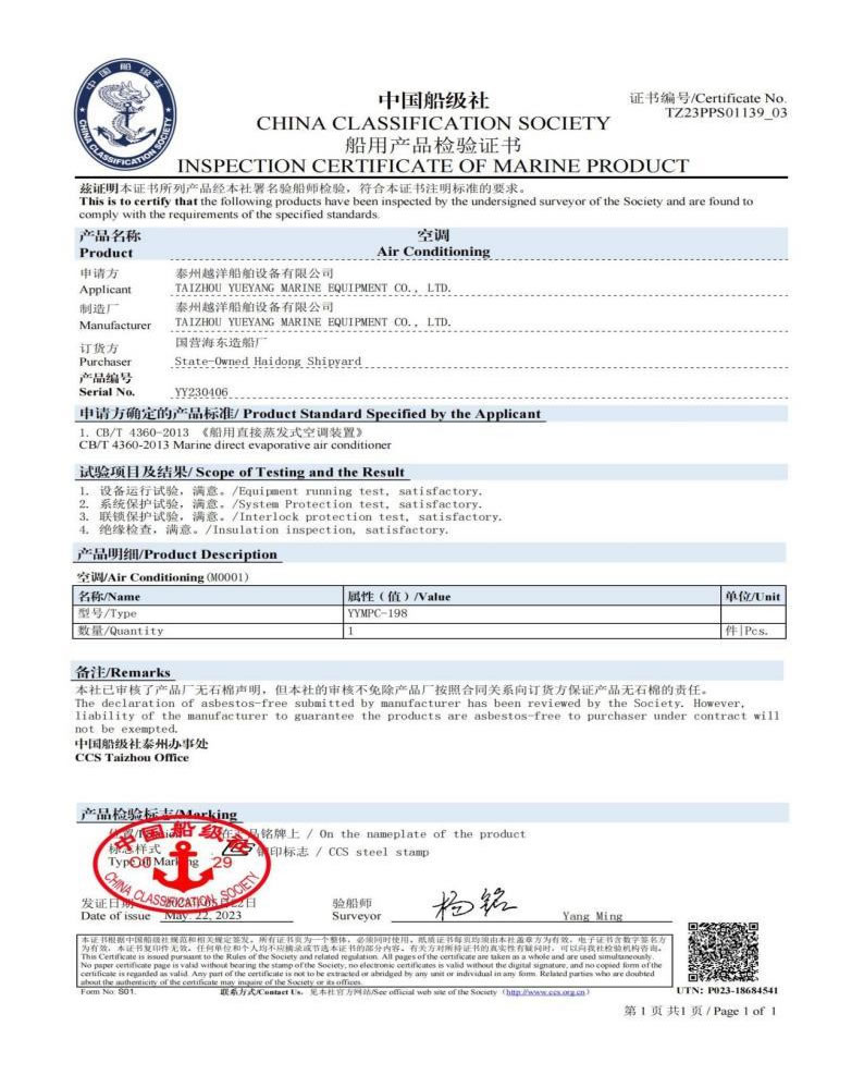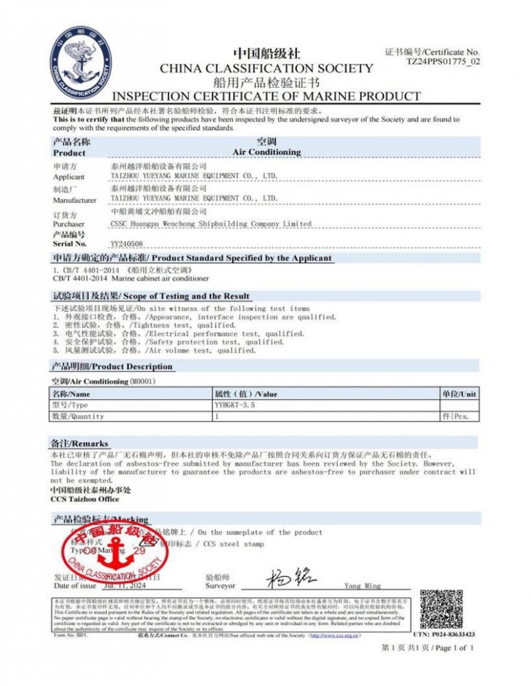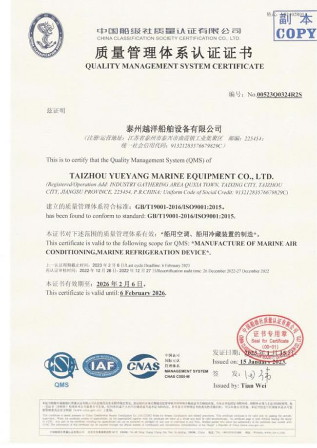 泰州越洋船舶設備有限公司多年專業(yè)從事艦船用空調(diào)、冷藏、冷凍設備、冷庫系統(tǒng),通風安裝系統(tǒng)(空調(diào)通風,機艙通風,自然通風)等。本公司地處美麗的曲霞鎮(zhèn)工業(yè)園區(qū),固定資產(chǎn)1200萬人民幣,占地面積1.5萬平方米左右,公司產(chǎn)品廣泛用于海軍驅(qū)逐艦護衛(wèi)艦,補給艦,海警,醫(yī)療船,科考船等,如:“東方紅2“,“海大號”,“向陽紅06”,“向陽紅09”,“向陽紅03”,“大洋1號”,“東方紅3”,“向陽紅18”,“向陽紅52”,地質(zhì)級科考船“業(yè)冶錚”號海洋平臺。